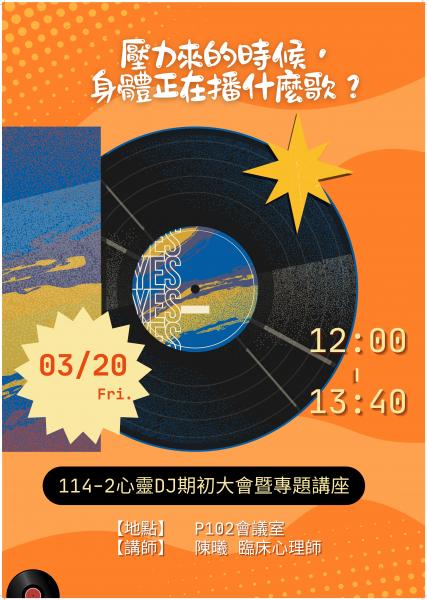 此份表單的目的為:(1) 讓我們認識你,(2)報名115/03/20(五)的心靈DJ期初大會(無法參加者請找代理同學出席)。