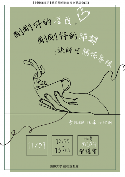 【☎ 桃園場-3】114-1導師輔導知能研討會11/07(五)20人座談會|剛剛好的溫度,剛剛好的距離:談師生關係界限