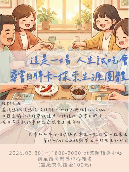 ★桃園校區-「人生試吃會-尋嘗日牌卡,探索生涯團體」★請至諮商輔導中心報名